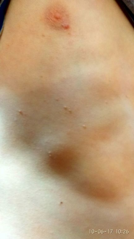Аллергия и прочие высыпанияПоявилась у сына давно, сначала 2 прыщика в области груди, иногда чесал их, значения не придавала. Уехали дети в деревню, приезжаю, а у него их больше....тут врачей грамотных нет, а я уезжаю через день. Переживаю! Но, моя мама постарается найти платного дерматолога и сходить к нему. Может у кого было подобное? Что это может быть?