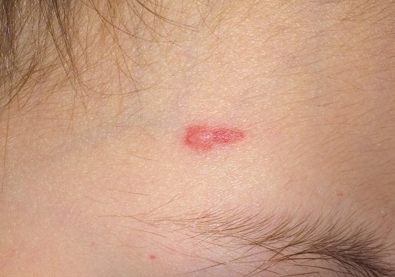 Около 5 дней назад появились как укусики от комариков, но не чесалось и не беспокоило ребенка. Сегодня глянула, пошел вокруг красный ободок. У нас их две шт. на голове (лоб).