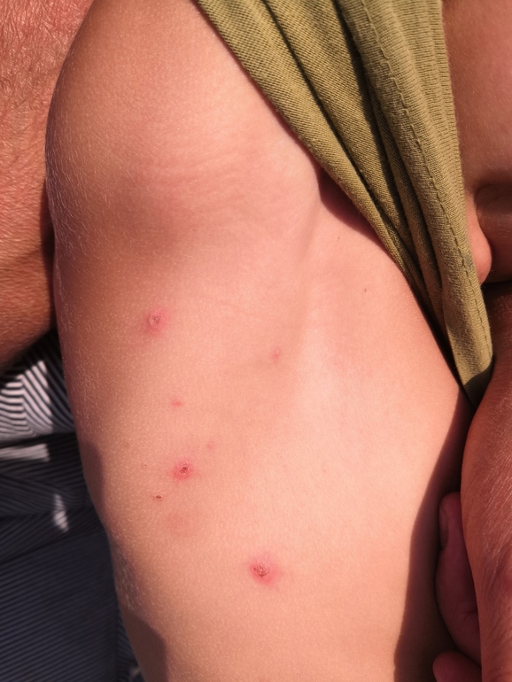 Сначала было у одного. Как комаринныц укус. Превратилось в рану, как ожог от окурка. Думали расчесал. Но потом появилось и у младшего. У обоих в районе подмышки.