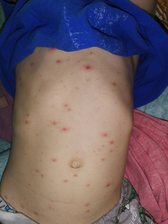 У моего ребенка была 39.8 температура . Я думала ангина полоскали горло . По итогу на 6 -й день психонула и вызвала скорую нас привезли в бокс раздели посветили фанатиком и врач говорит он блестит смотрите . Я вообще не чего не увидела тело было нормального цвета без каких либо пятен. В итоге я написала расписку уехали домой. Приезжаю , а у него на груди и спине пятна красные и температура спала ну думаю хорошо, через 2 дня опять температура 40 день продержалась и опять пятна посыпали. Короче мазала я их фукарцином утром ночью циндолом в обед зелёнкой . Это просто что бы не запутаться какие мазала какие нет🙂 и слава богу что он не чесал их.