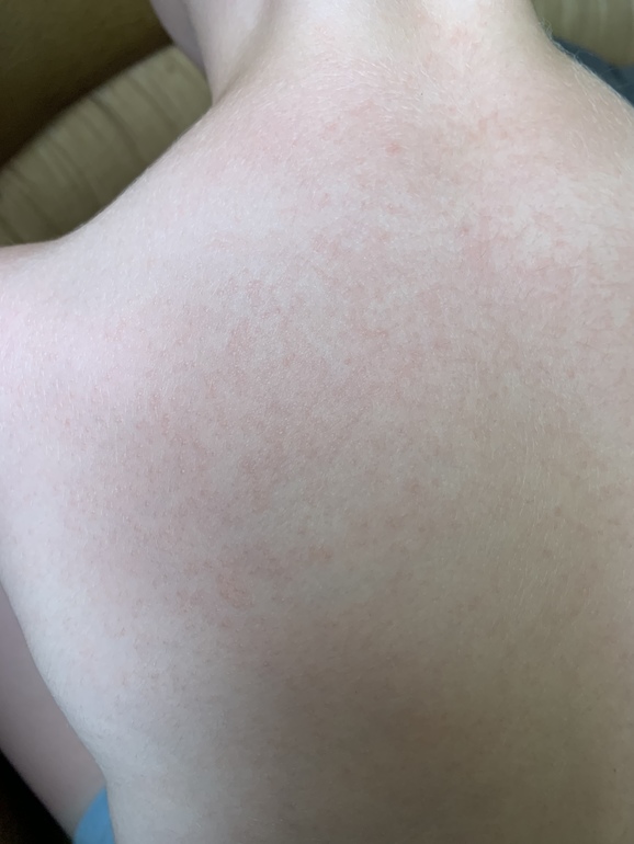 На выходных обгорела сильно спина, шея и руки, мазала Пантенолом, вчера увидела такую вот сыпь, температуры нет, чешется