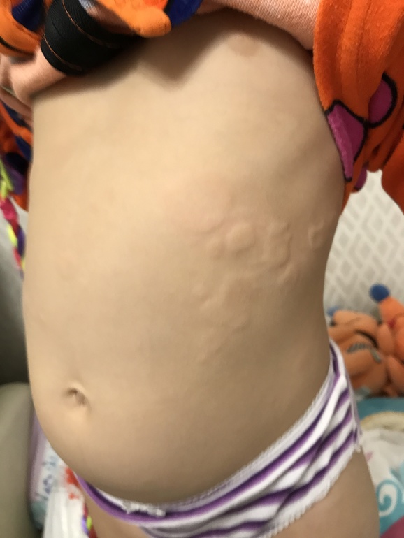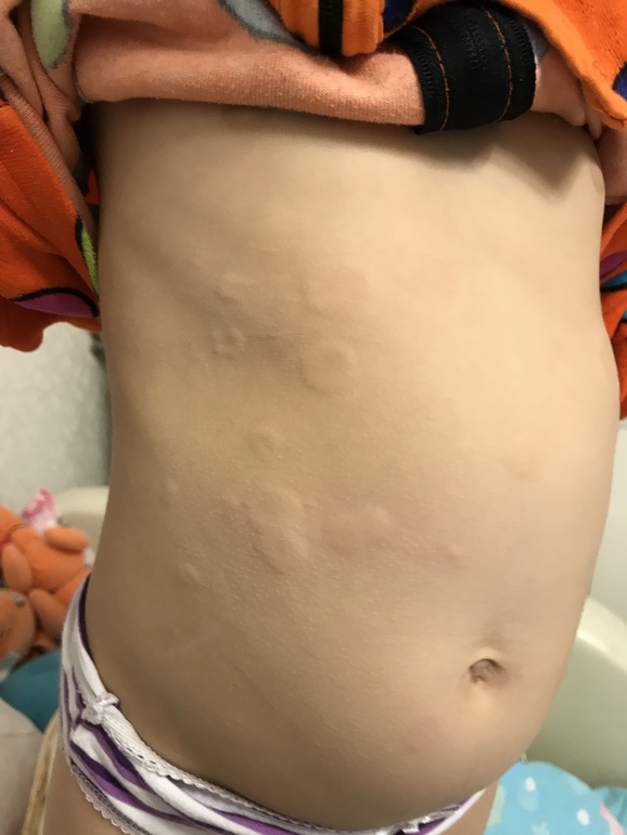 Это крапианица, бывает вылазит сразу на алерген бывает что накапливается дней 5 , у нас было такое на лекарство эреспал, в этот раз когда вылезла превысили дозировку, а до этого пили 4 года в меньшем объёме и нормально все было.. Ищите аллерген, это не шутка... Может отёк гортани случиться..