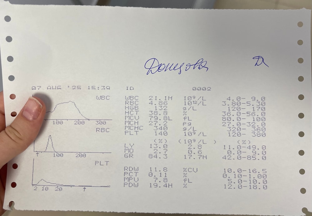 В 16:30 уже были в больнице, там температура уже была 39. Сделали жаропонижающий укол.
