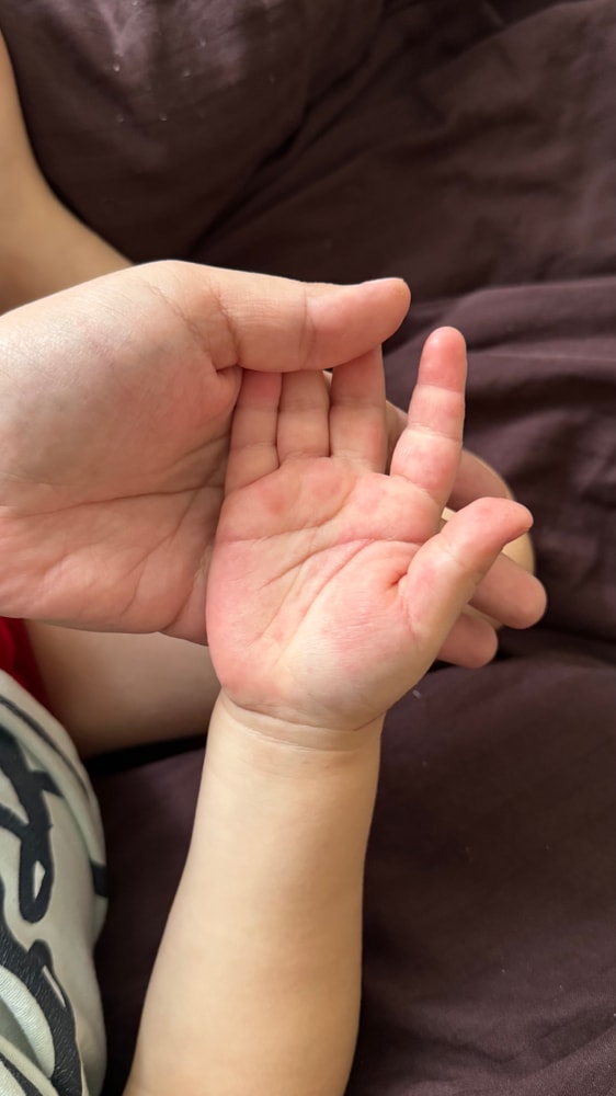 Что может быть? В суботу после ночи заметила, что у ребёнка красные ладошки. Подумала что аллергия, начала давать антигистамин, но не помогло, потом подумала может у него коксаки, но никаких симптомов не было больше, ребёнок активный, с хорошим аппетитом, активный, без температуры. Пошли мы к врачу, ждали анализы, анализы в норме, врач сказала скорее всего это аллергия, сказала дальше пить антигистамин + крем против аллергии. Сегодня уже среда, но мне кажется что совсем не помогает