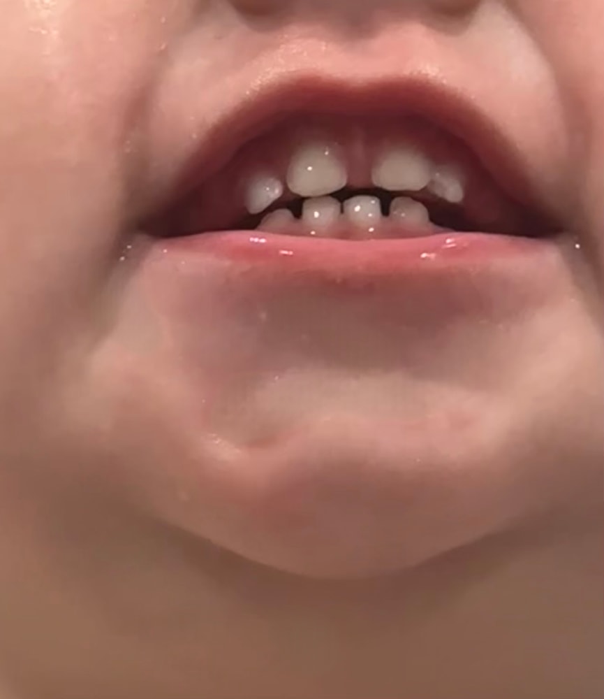 Стоматологи сказали, что, возможно, надо было тут уздечку подрезать, но в год уже поздно.