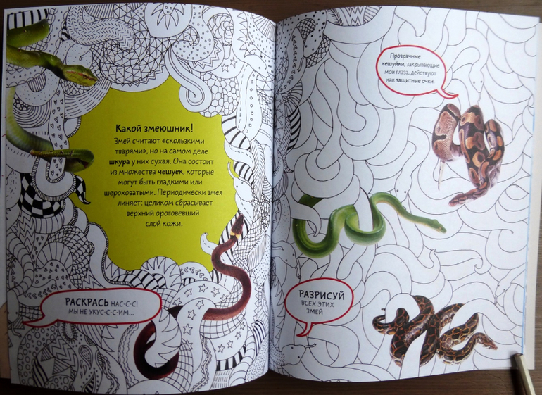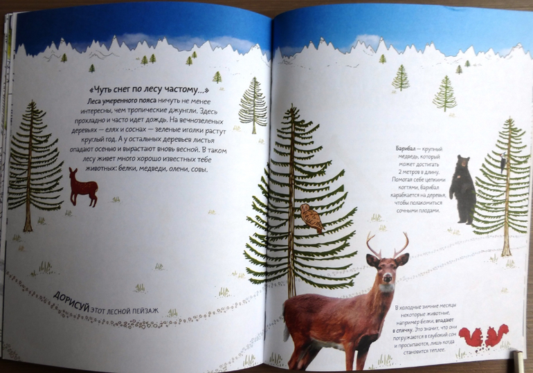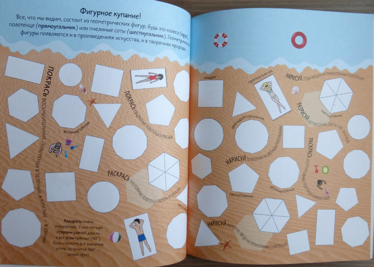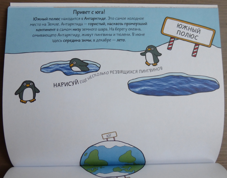 Задания все разнообразные, прочитав познавательные факты, ребенку предлагается что-то дорисовать, найти героя на странице, придумать, пофантазировать. Увлеченному ребенку «взрыв фантазии» обеспечен! Для работы потребуются только цветные карандаши, остальное все есть в книге!