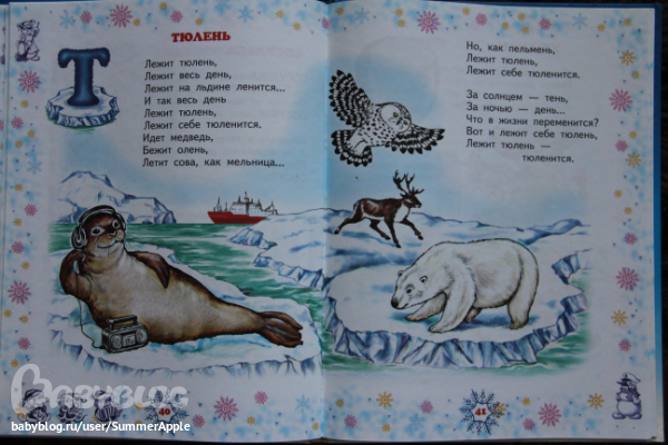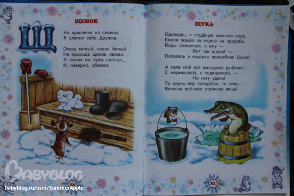 На каждой страничке добрые картинки, новая буква и веселые стишки. Усачёва, думаю, все знают - он в рекламе не нуждается;)) Но пару страничек все же покажу.