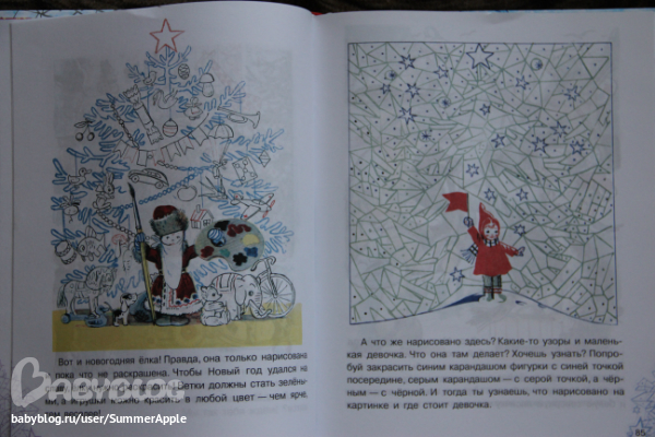 "Подарок", Сутеев. Под одним заголовком несколько творческих заданий для детей на новогоднюю тематику. Но мне жалко давать рисовать в такой глобаьной книжке... Не мать, а мачеха!)))