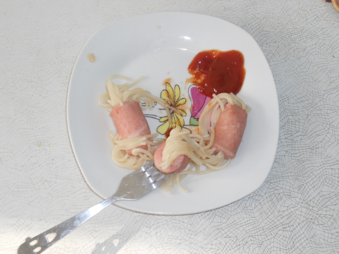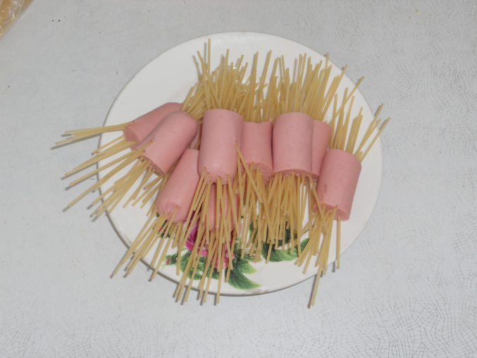 Я видела уже много у кого, только у самой все руки не доходили ) Егор понатыкал спагетти в сосиски, потом начал в свое мороженое тыкать )