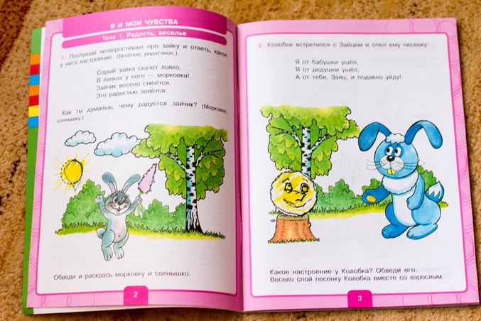 Эта книжечка стала для меня настоящим открытием, т.к. выполняя разные задания на логику, развитие речи и пр., мы забываем о душевном развитии. С 3х лет у ребёнка возникает множество новых проблем, например - появляются страхи, возникают вопросы "что есть добро, а что зло?" и др. В этой книжечке многое рассказано и передано через текст, задания...