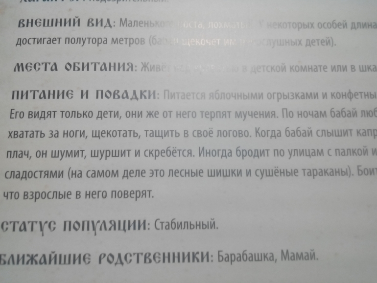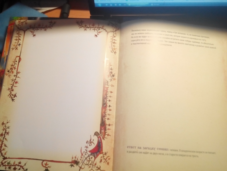 Ребенок изучал книгу долго, часа два - из комнаты доносились либо смех, либо крик : "Мам, а знаешь! ( и далее зачитывание информации о Змее Горыныче или Жар Птице...)