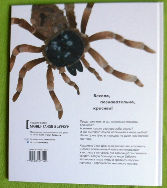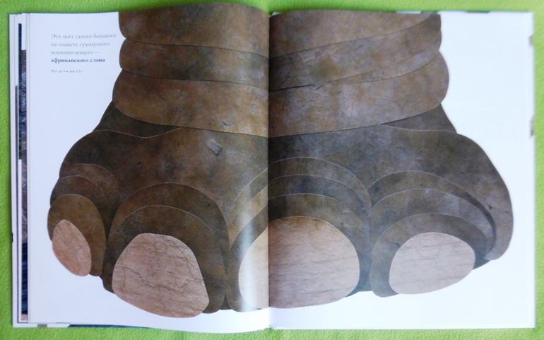 Эта книга может стать отличной альтернативой походу в зоопарк, т.к. это единственная в своем роде книга, где все изображения животных соответствуют их действительным размерам и это не просто книга, а книга-игра. Можно перелистывать страницы и сравнивать свои части тела с частями тела животных.