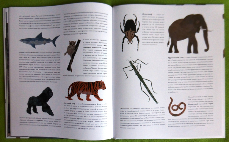 В конце книги на двух разворотах есть более подробная информация с интересными фактами о самых больших и самых маленьких обитателях нашей планеты.