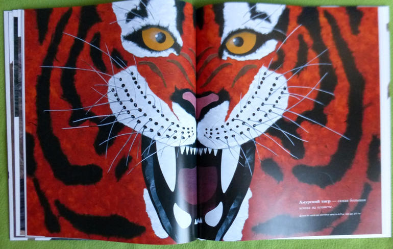 В своей оригинальной книге Стив Дженкинс показывает животных в натуральную величину! Мы можем увидеть самую большую в мире бабочку, заглянуть в глаза тигру, увидеть в натуральную величину глаз гигантского кальмара, пасть гребнистого крокодила, самое длинное в мире насекомое, гигантского земляного червя и других обитателей планеты. Всего их в книге 18! Но каждый из них является самым-самым, самым маленьким, самым большим, самым тяжелым, самым крупным. Книга очень увлекательная и познавательная.