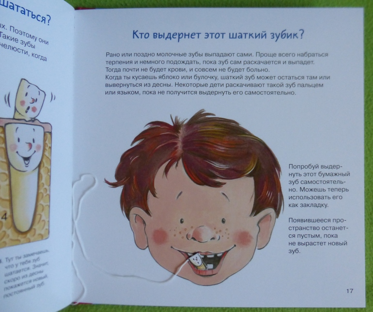 В книге предлагается малышу самостоятельно вытянуть бумажный зуб