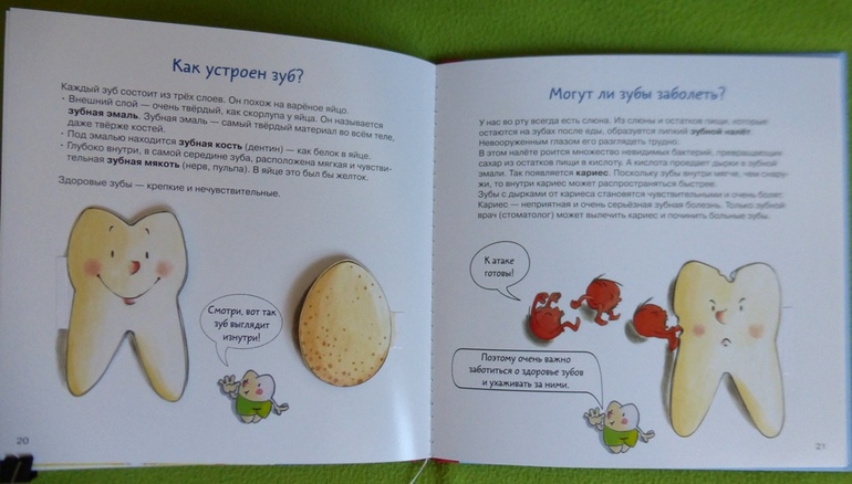 Полезной и нужной для нас оказалась книга, выполнила она несколько задач: познакомила наглядно со строением зубов и ненавязчиво посвятила о необходимости ежедневного ухода за зубами.