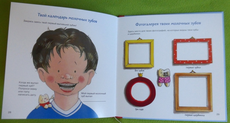 На последнем развороте ребенку предлагается создать свой персональный календарь молочных зубов и фотогалерею, где видно как зубки малыша росли с рождения до 3 лет