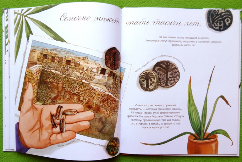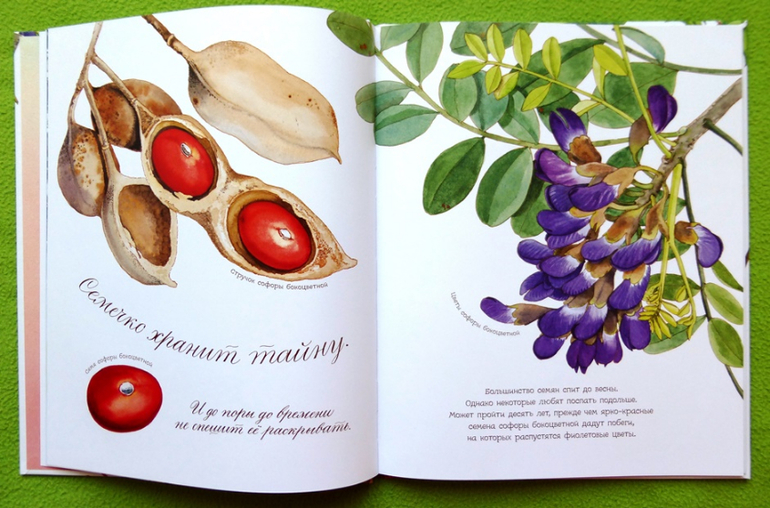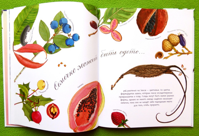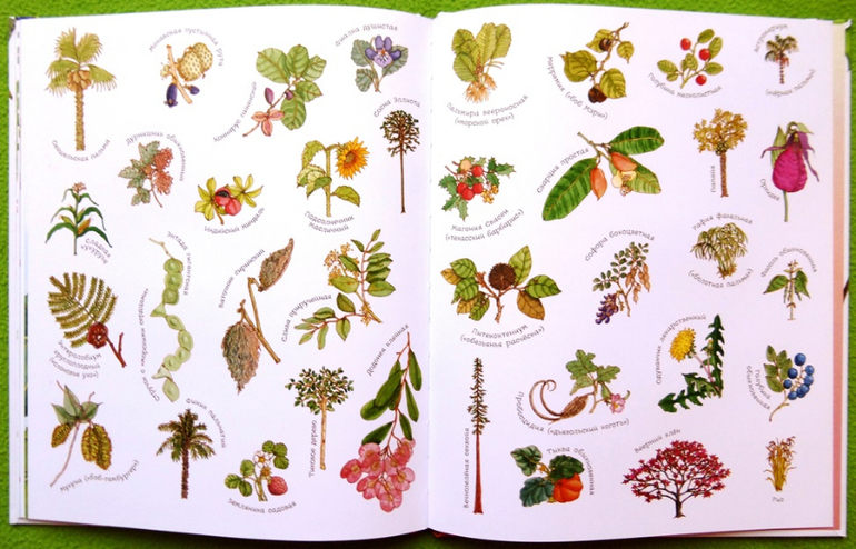 На каждом развороте интересные факты из мира ботаники и прекрасные иллюстрации.