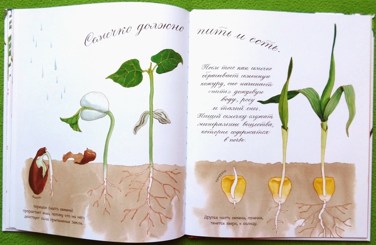 Покажу три самых любимых разворота, в них меньше всего текста, но насколько тонко показано зарождение жизни растения