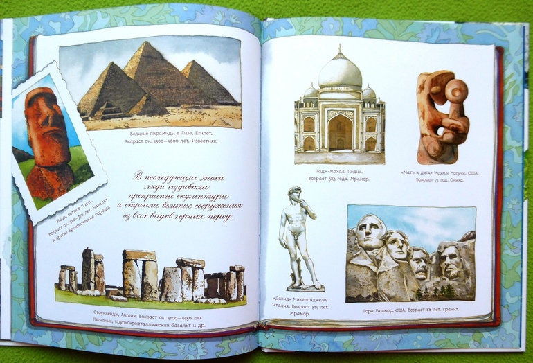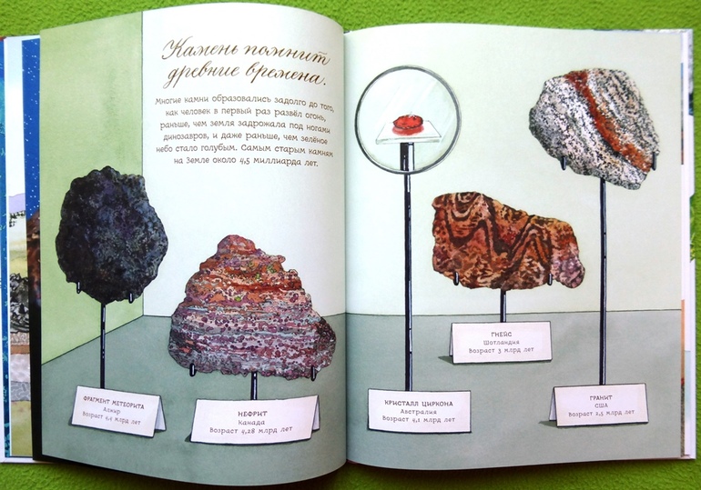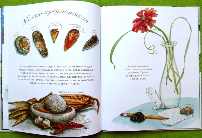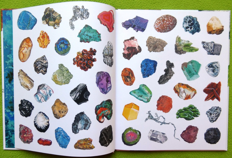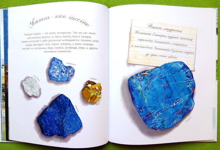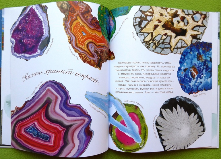 В книге собрана целая коллекция камней: от песчаника и гранита до ярко-синего азурита и снежного обсидиана.
