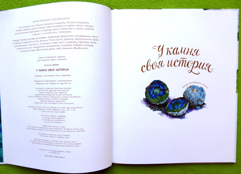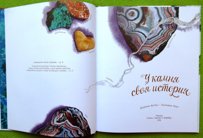 «У камня своя история» - она из книг серии арт-энциклопедий от Дианны Астон и Сильвии Лонг, знакомит нас с удивительным миром камней и минералов. В книге повествуется о происхождении камней, их формах и размерах, рассказывается о обычных камнях, кажется ничем непримечательных , но читая, мы узнаем сколько же в них хранится тайны и удивительных открытий и все это сопровождается прекрасными натуралистичными иллюстрациями.
