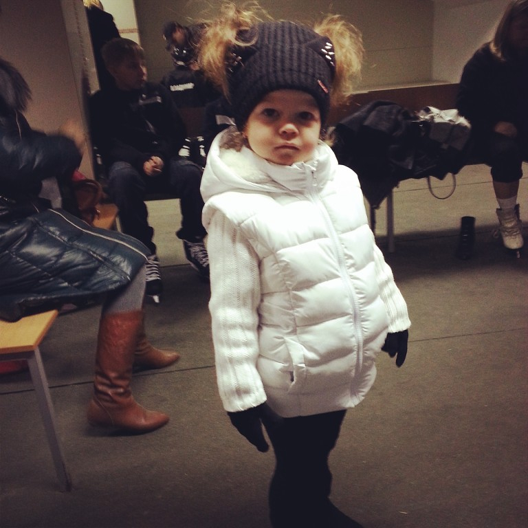 Ходили на лёд в субботу и в воскресенье по часу. Знаю,что для начала не нужно много тренировок,чтобы ножки не уставали ,так ведь? Но мы так увлеклись,теперь просится каждый день!
