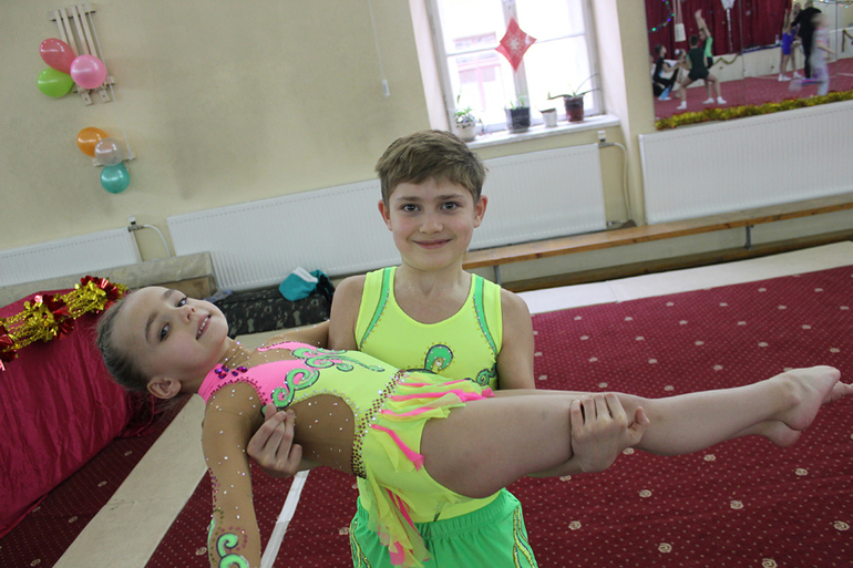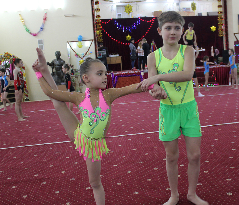 У вас замечательная дочка, а спинка очень гибкая. Она и в акробатике сможет ее показать чуть позже. А они по какому- то разряду выступали? У них несколько упражнений?