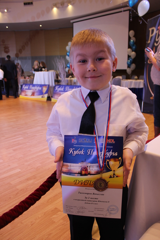 И вот, как в тумане я слышу:"Второе место завоевал Вячеслав Тихомиров!" И мой мальчик такой гордый и спокойный идет за медалью...