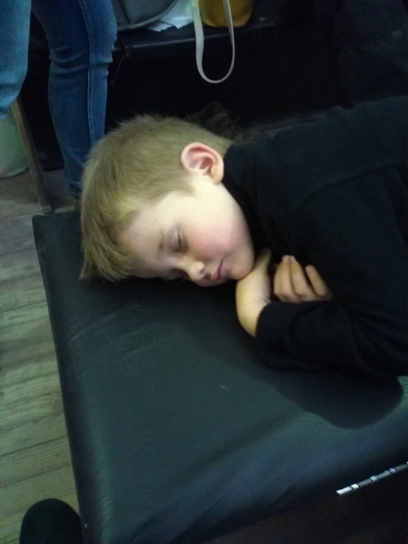 Сын очень хотел грамоту за соревнования. Поэтому прождали 6 часов до награждения. Тимур набегался, налазился, наобщался - уснул. Еле растолкали на награждение.