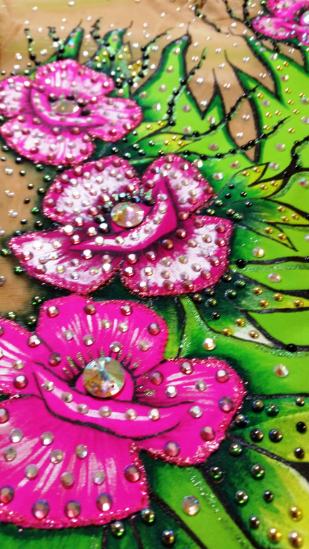 Очень красивый, яркий купальник. Итальянский бифлекс, сетка, стразы ТОЛЬКО Сваровски+ пришивные,художественная роспись. б/у 10000.
