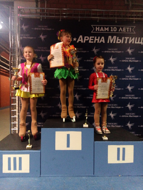 Ну и совсем уж неожиданными стали для меня наши способности к танцам.С января маленькой группой детей с фк ходили два раза в неделю на танцы.День современные танцы типа хип-хопа,день бальные (полька,вальс,чачача,джайв...или как там его правильно) ...Ну и вот в конце мая хореограф предложила моей и еще одной девочке старше нас на 2 года поучаствовать в соревнованиях по бальным танцам.Я ,если честно,особым желанием не горела,в выхи опять куда то ехать,покупать платье-туфли...но мама другой девочки стала меня уговаривать,хотя тренер дала понять,что у той больше шансов что-то получить и выступать они будут в одной категории...В общем, платье нам отдала соседка, погода была дождливая как раз,т.е. мы без дачи и я купила туфли,поехали в общем.Ну выступила,а я то там вообще ноль)В конце смотрю об'являют,награждают ,ну думаю,наверное всех так,а другая мама смотрю уже к тренеру побежала,т.к. моя награды то получила,а другие стоят пока без всего...потом смотрю,та мамка подбегает к своей и уводит ее.Оказалось,что Полька заняла 1- е место))