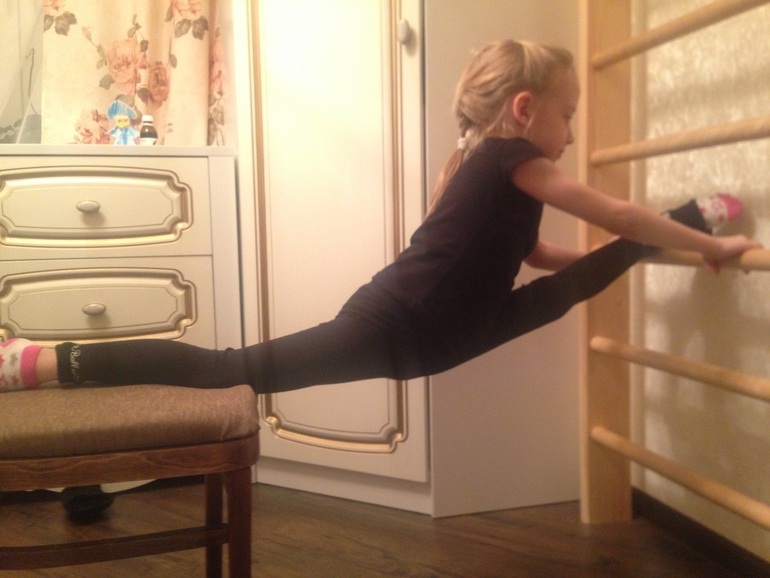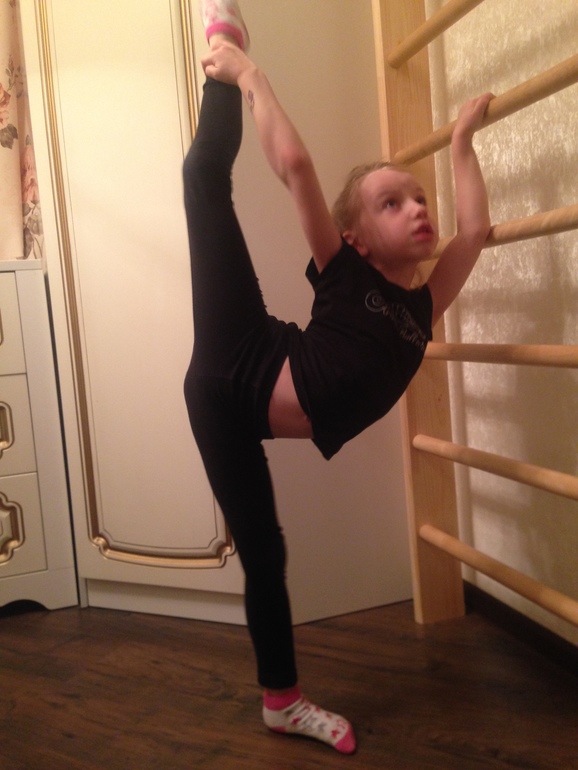 Второй. Группа 2009-2010 г. Соня родилась 30.11.10, поэтому и девчонок 2010 года приходится постоянно догонять, а о 2009 я уж и не говорю)) Но мы стараемся, динамика есть, стремление и желание имеется. А еще, заметила, что когда ребенок со старшими занимается, он всегда в тонусе, всегда есть к чему стремиться... В прошлом году были в ОФП с 2010-2011 гг., потом тренер из старшей группы увидела Соню, потянула ее, на шпагат посадила, и сказала, что эту группу уже переросли, забрала к себе. Вот это был настоящий стимул работать дальше) На 6-летие в подарок Соня попросила гимнастическую лесенку, теперь домашние тренировки проходят примерно так: