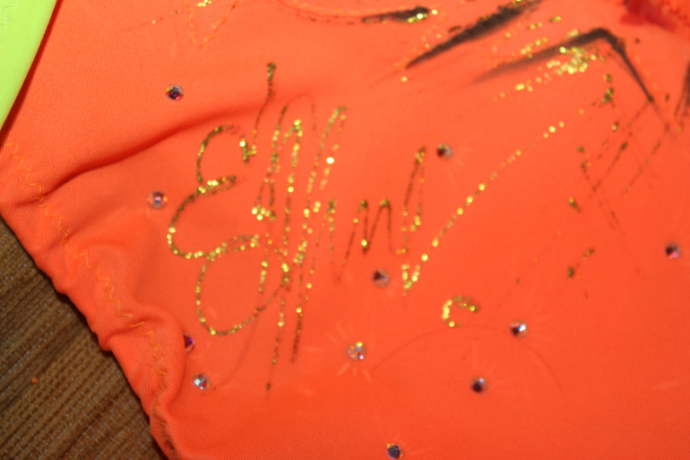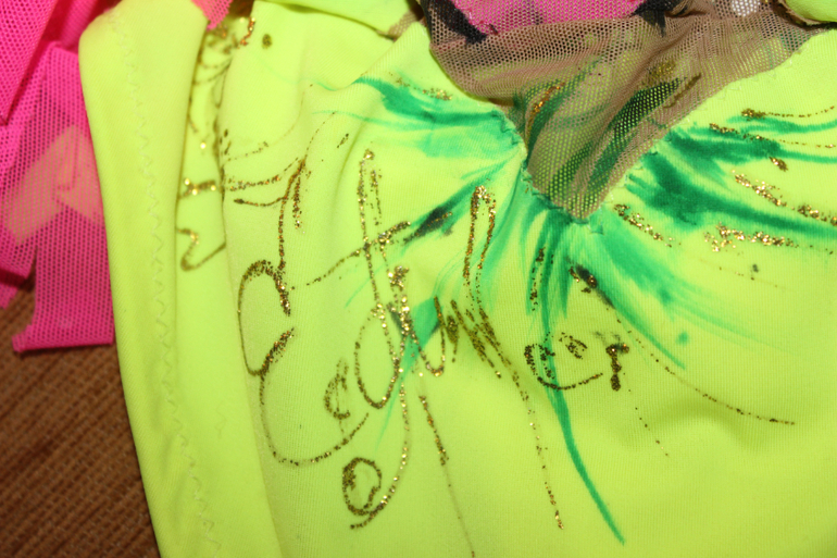 Роспись автора на обоих купальниках (на трусиках сзади под юбочкой)