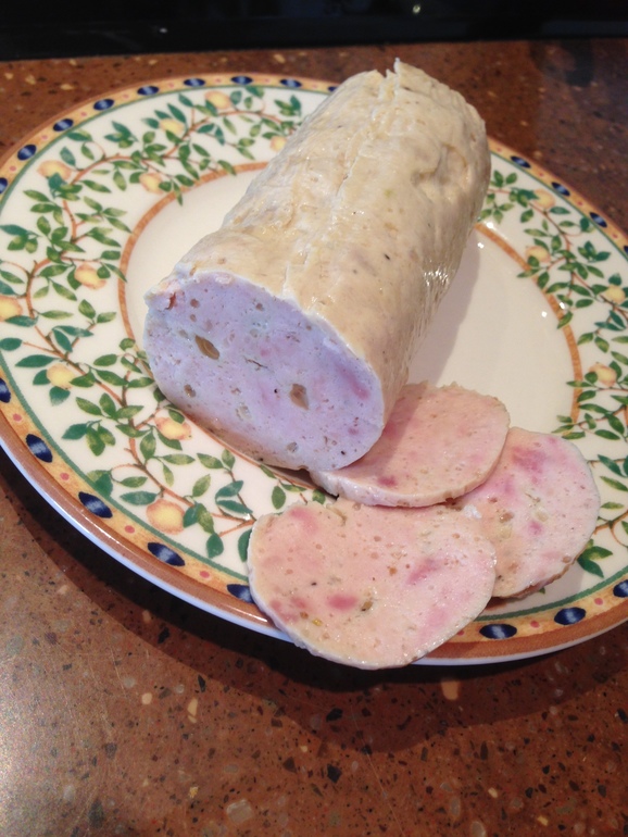 В инете рецепты разные. Но в целом все сходится к одному: разные виды мяса доводятся блендером до пюреобразного состояния, добавляются разные специи. А дальше вариации: молоко, яйцо, сливки, крахмал, желатин. Заматывается туго с пищевую пленку и варится или запекается в течение 1-1,5.