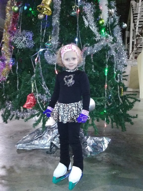 У нас на катке достаточно тепло, поэтому на дочке: х/б бодик, носочки, термобрючки, термоплатье, перчатки и повязка на голову. Поначалу я дочке ещё кофточку давала, но она кофту на катке всё время снимала.