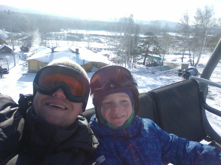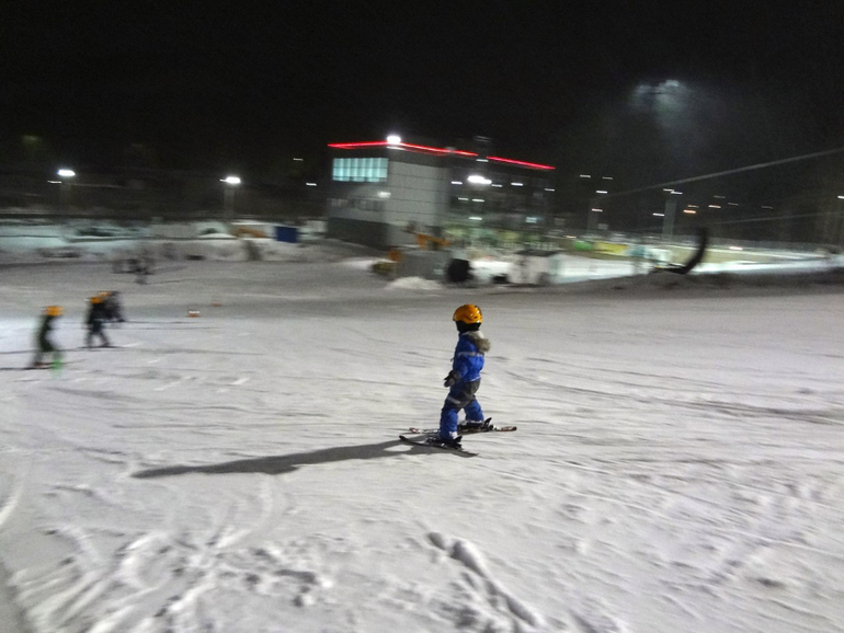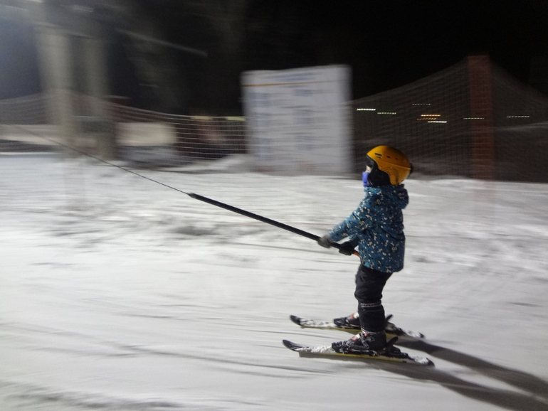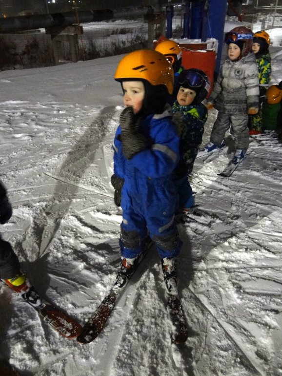 Здесь тоже первый год ещё катания. Вообще первый год - это прорыв! Таак много новых умелок. Сначала осторожное "ощупывание склона", помню, как пешком боком по резинке поднимались первые занятия 2, наверное метромв на 10-15 вверх и спускались на прямых лыжах, как родители новичков высматривали "где же там мой?". Первые спуски с подъёмника с тренером за руки...