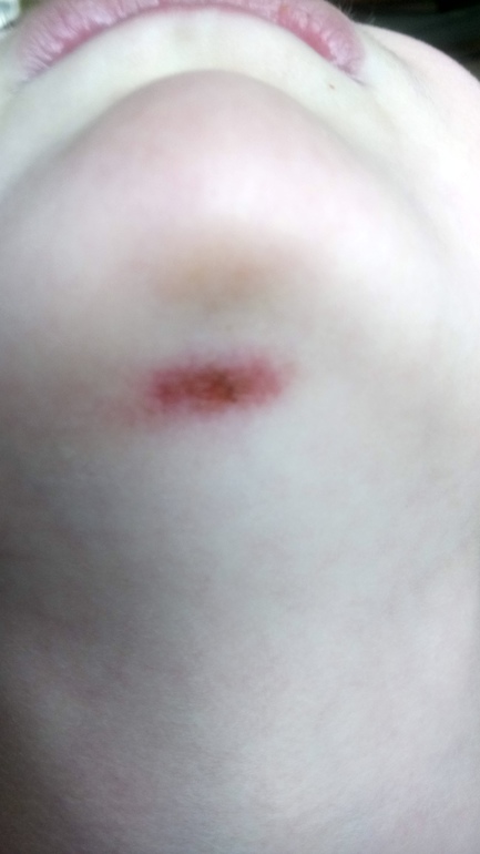 Акробатика, гимнастикаПодскажите, что делать с подбородком. Я в замешательстве честно говоря. Писала ниже пост про перекаты через подбородок. Болит у неё он. Там ссадина такая (. Фото под катом. Мажу Траумелем, но если она постоянно трётся им об ковёр, какой смысл - то? Сказала тренеру, говорит бывает, потом пройдёт). А сейчас то как? Может подкладывать что? Посоветуйте, может у кого так было?