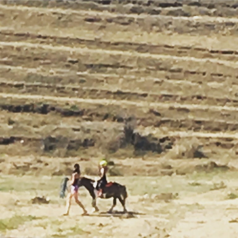 Первая попытка без корды закончилась бегством пони из манежа вверх по горе. (О, Боги, ну надо же закрывать ворота😱). Слышу крик - спасите помогите! Бодрый малолетка Наполеон скачет вверх по горе, на нем, едва держась в седле Дашулька, с криками я не умею тормозить!!!!!, а следом бежит инструктор. Беглец был пойман, Дашку он, конечно, сбросил! Но после паузы с промыванием небольшой ранки на плече и приличной ранки на боку, ребёнок снова в седле! Уважаю!!!! Даша! Все получится!👍💪👏. Зато теперь Даша точно знает, что пони тоже кони!