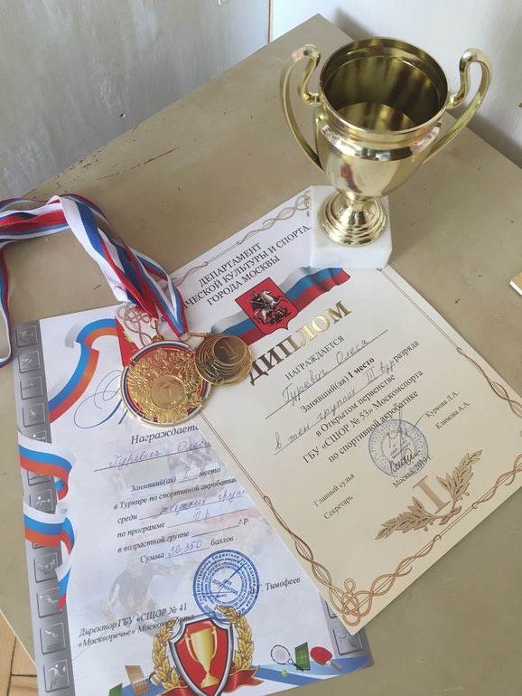 Акробатика, гимнастиканадеюсь на этом с 3 взрослым мы закончили...два первых места, первое выступление на чужом ковре.