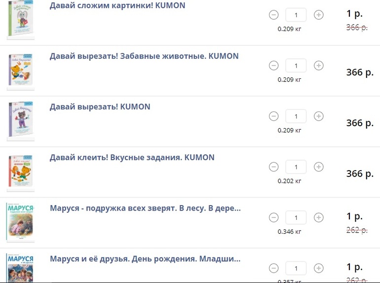 С данной акцией книги получаются существенно дешевле, если их заказывать в Озоне или Лабиринте. С акцией "вторая книга бесплатно" очень выгодно заказывать пособия для класса для школы или для группы в детском саду.