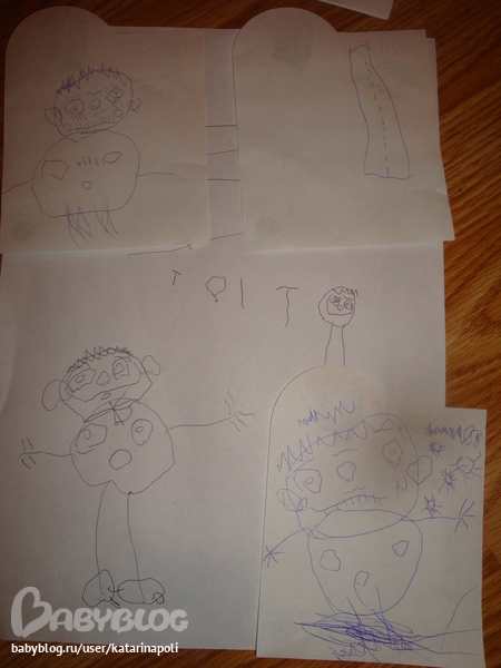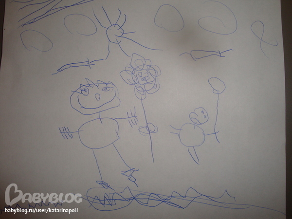 хотелось бы сказать,что ПОлина оч старается,когда что-то делает,стала прорисовывать мелочи разные,человечки у нее уже давно усовершенствовались,стала рисовать пальчики,глаза,бровки,рисницы,даже бусы,туфли и прочие мелочи.