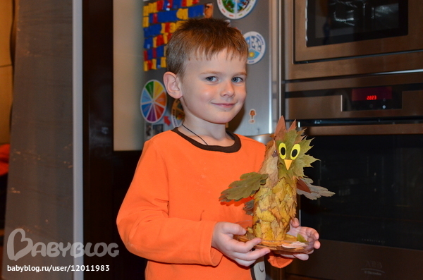 Хотя от Мишки слышала - "мама, а если сова красивая получится - давай не понесем ее в сад!" Уговорила, объяснила, что все поделки негде дома хранить!