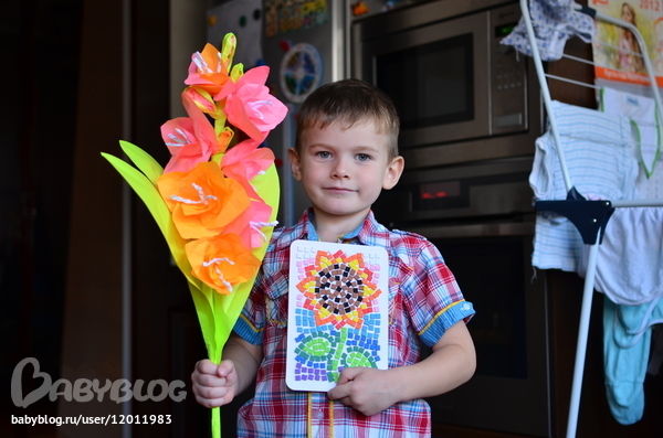 ТворчествоТак мы с Мишкой поздравляли любимого дедушку - мастерили сами.