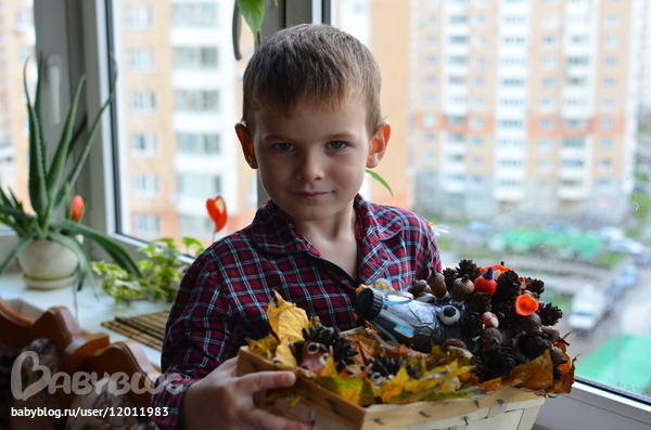 Потом мы узнали, что надо поделку в сад, но с ежами МИШКА не смог растаться и мама придумала: