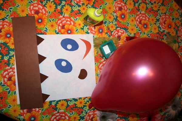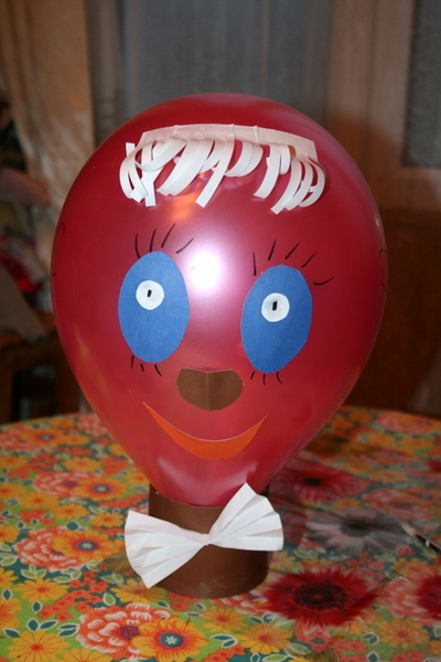 Нужно: воздушный шарик, цветной картон, бумага, ножницы, клей, фломастер.