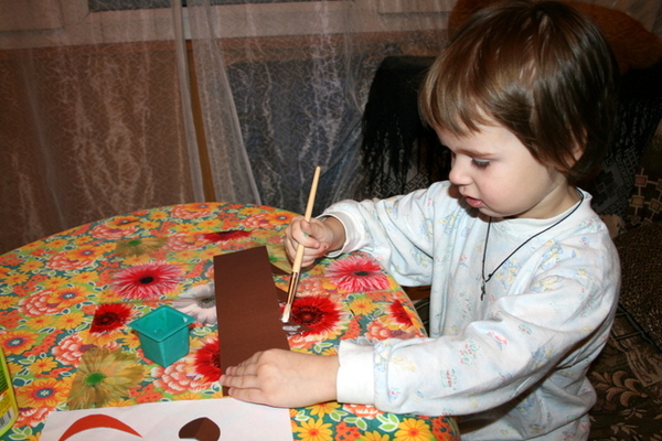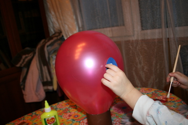 ТворчествоЕще вчера пообещала Сашке, что будем делать забавного человечка из воздушного шарика. С утра прямо в пижаме она взялась за дело. За окном еще темно, мама носится между Сашей с шариком и кашей на кухне. Все же договорились сначала позавтракать, проводить на работу папу, а уж потом заниматься нашим человечком. Пижаму так и не сняли.