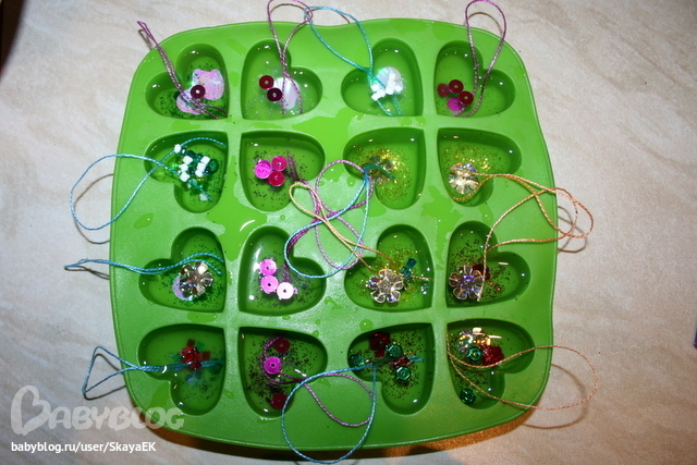 Потом накидываем туда всякой блестячей ерунды: блестки, паетки, бисер...