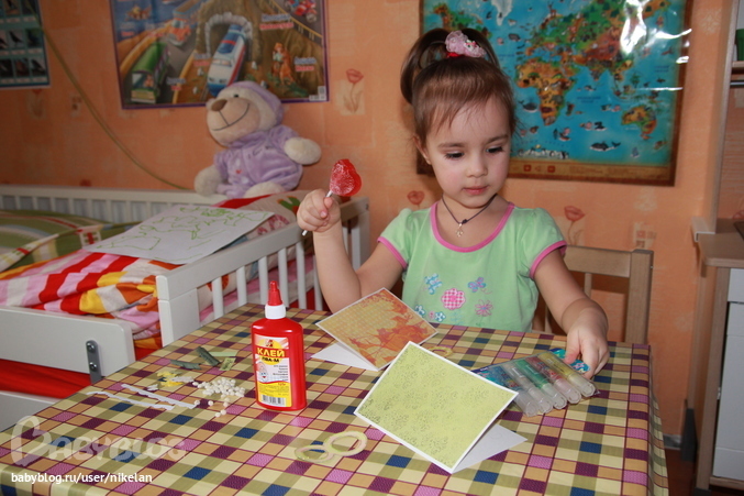 А тут сказала, что волны было сложно самой сделать, поэтому их клеила воспитатель. Последнее время дочь часто употребляет словосочетание - "это очень сложно.."
