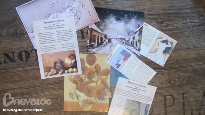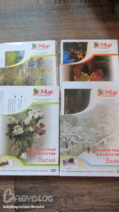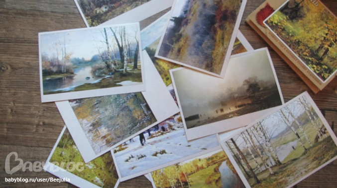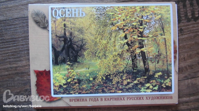 любимый комплект, карточки с картинами расположены по временам года, на обороте краткая инфа о художнике ик артины, картон плотный, глянцевый! Практически не мнется! И мы с удовольствием в каждое время года рассматриваем нужный комплект или вешаем на стену!