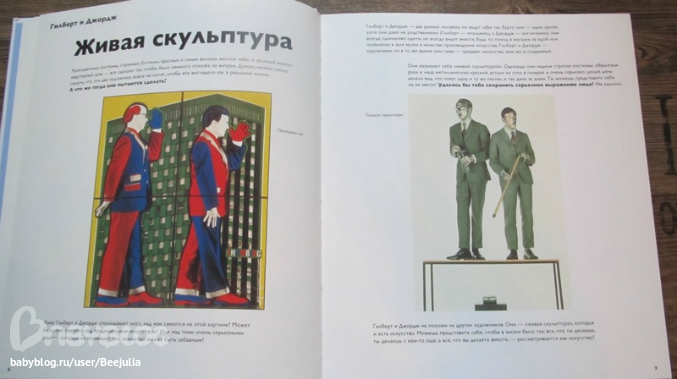 Книжки тоненькие, квадратные, рассказ построен от первого лица, ребенок рассказывает о том как он подружился с художником и в рассказе описываются ключевые моменты из жизни художника, его характера. И конечно же очень красочные иллюстрации. Мне кажется, что это очень удачное пособие для ненавязчивого знакомства ребенка с художником и его творчеством, нет привычного академизма. А в конце книги дана краткая информация о биографии и художественном стиле художника.